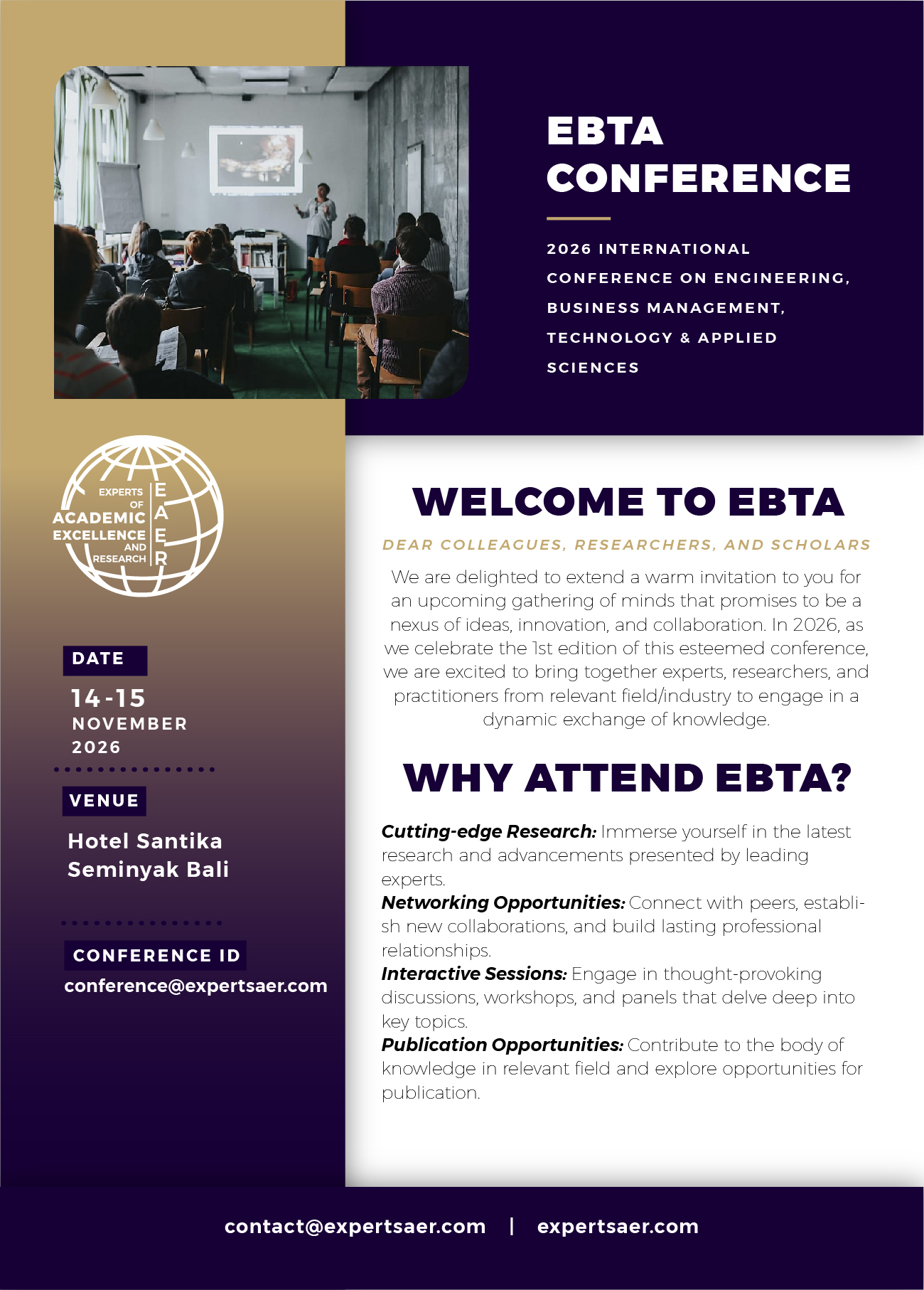 - Alternative Submission: If you prefer, you can also submit your paper via email to conference@expertsaer.com.